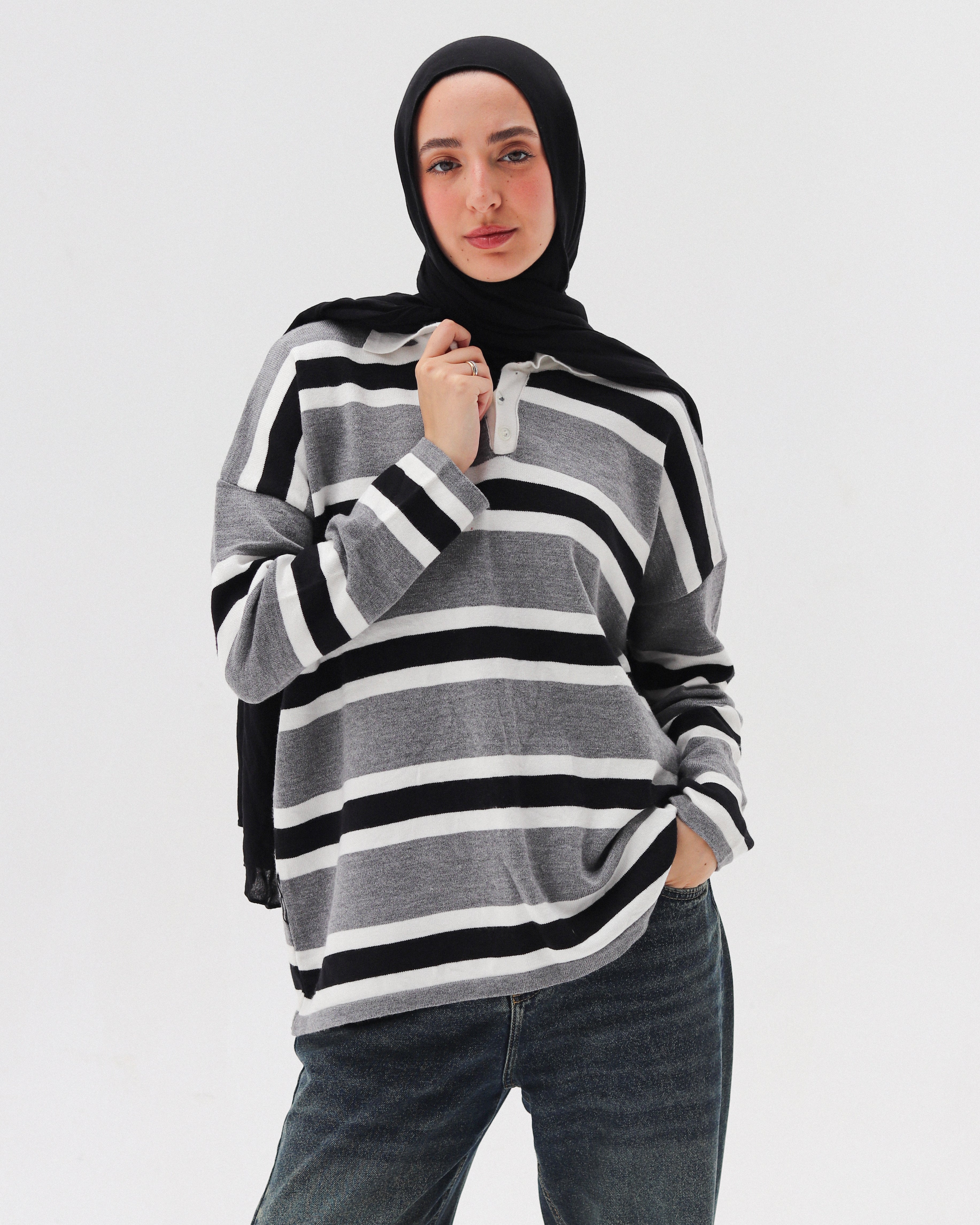 A laid-back striped knit with a relaxed, slightly oversized fit perfect for effortless everyday style. Wear it to class, coffee runs, or casual days out.