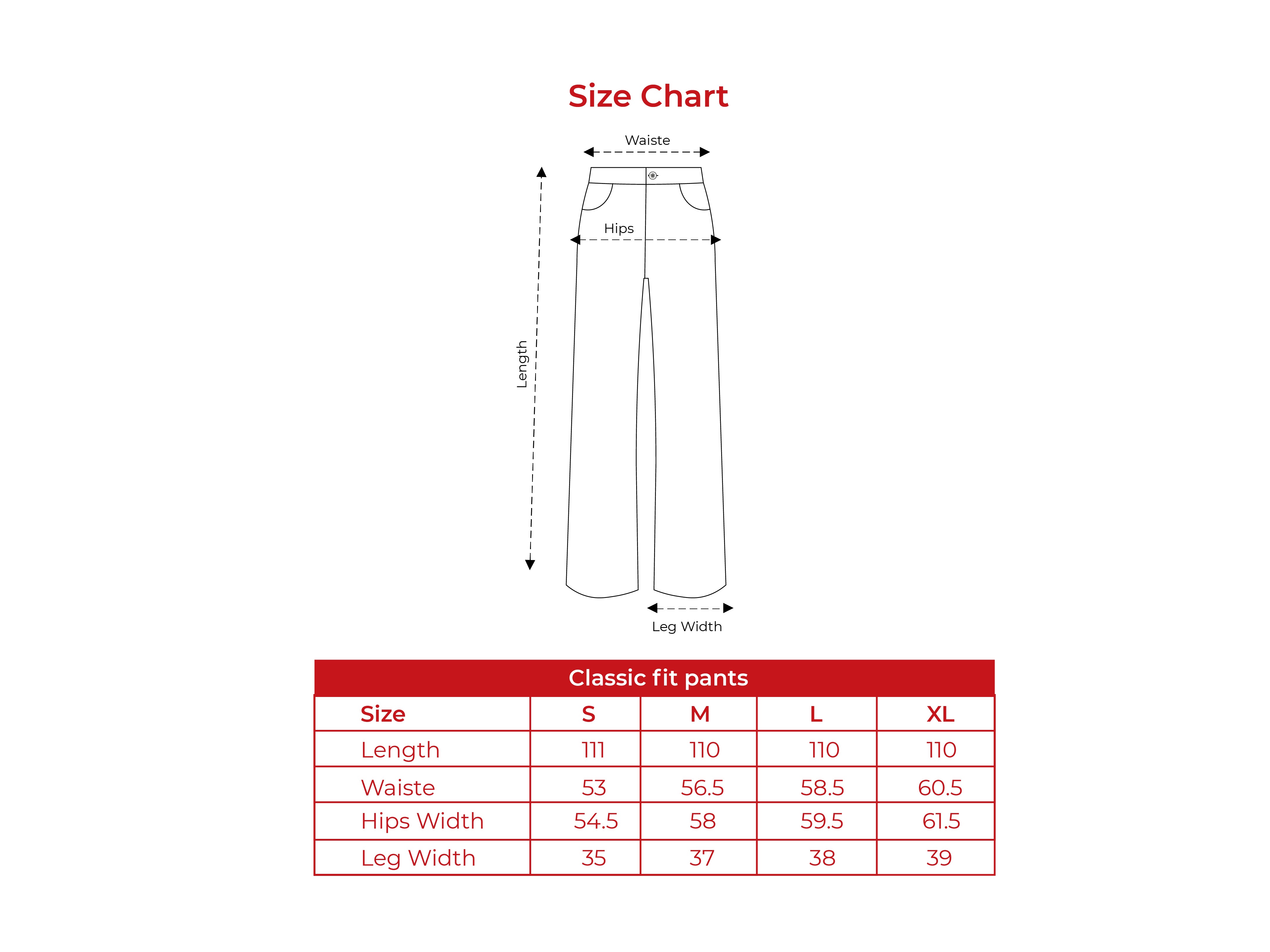 Classic Fit Pants offer timeless versatility for any wardrobe. Designed with a balanced silhouette that flatters various body types, these pants provide comfortable all-day wear without compromising on style.