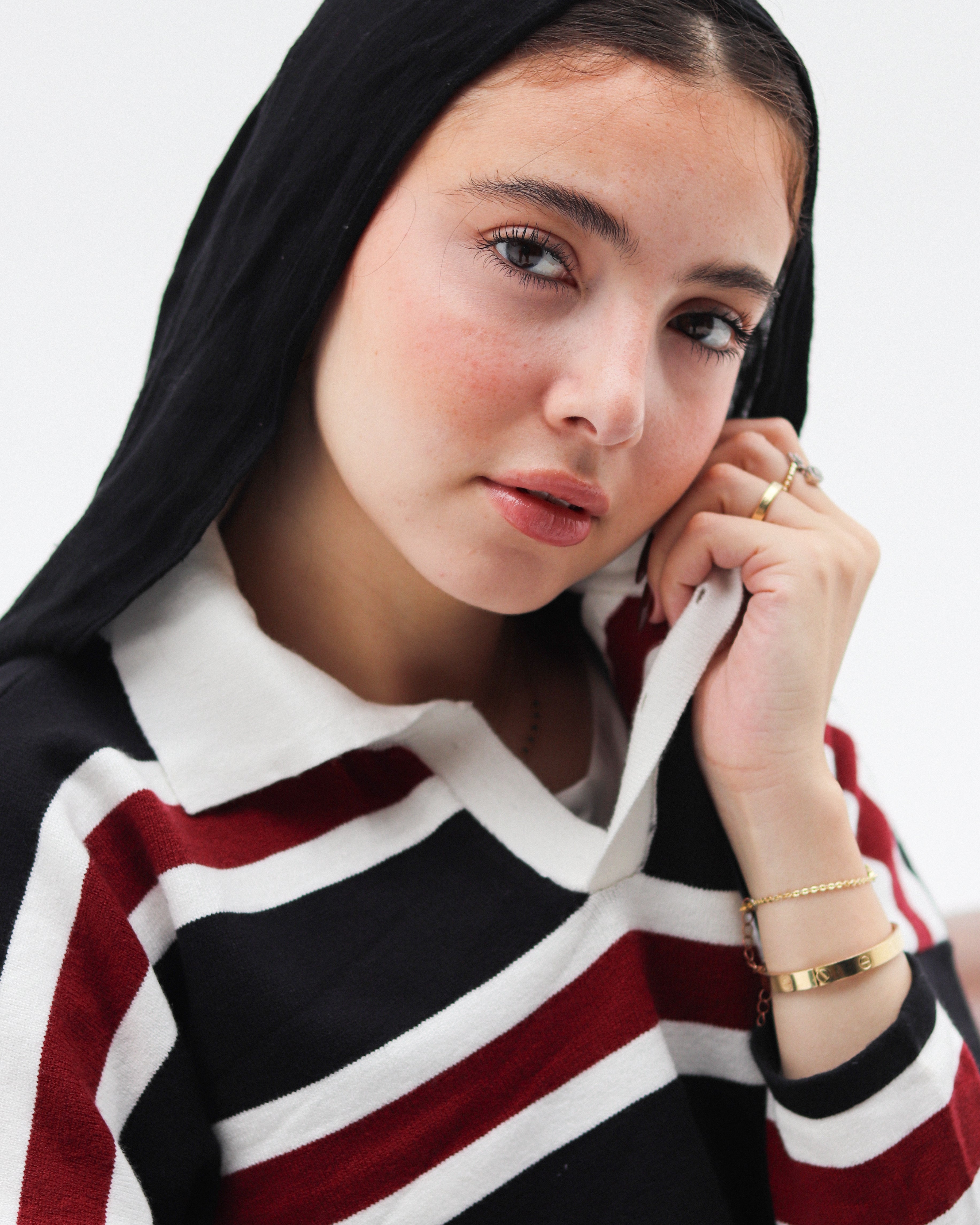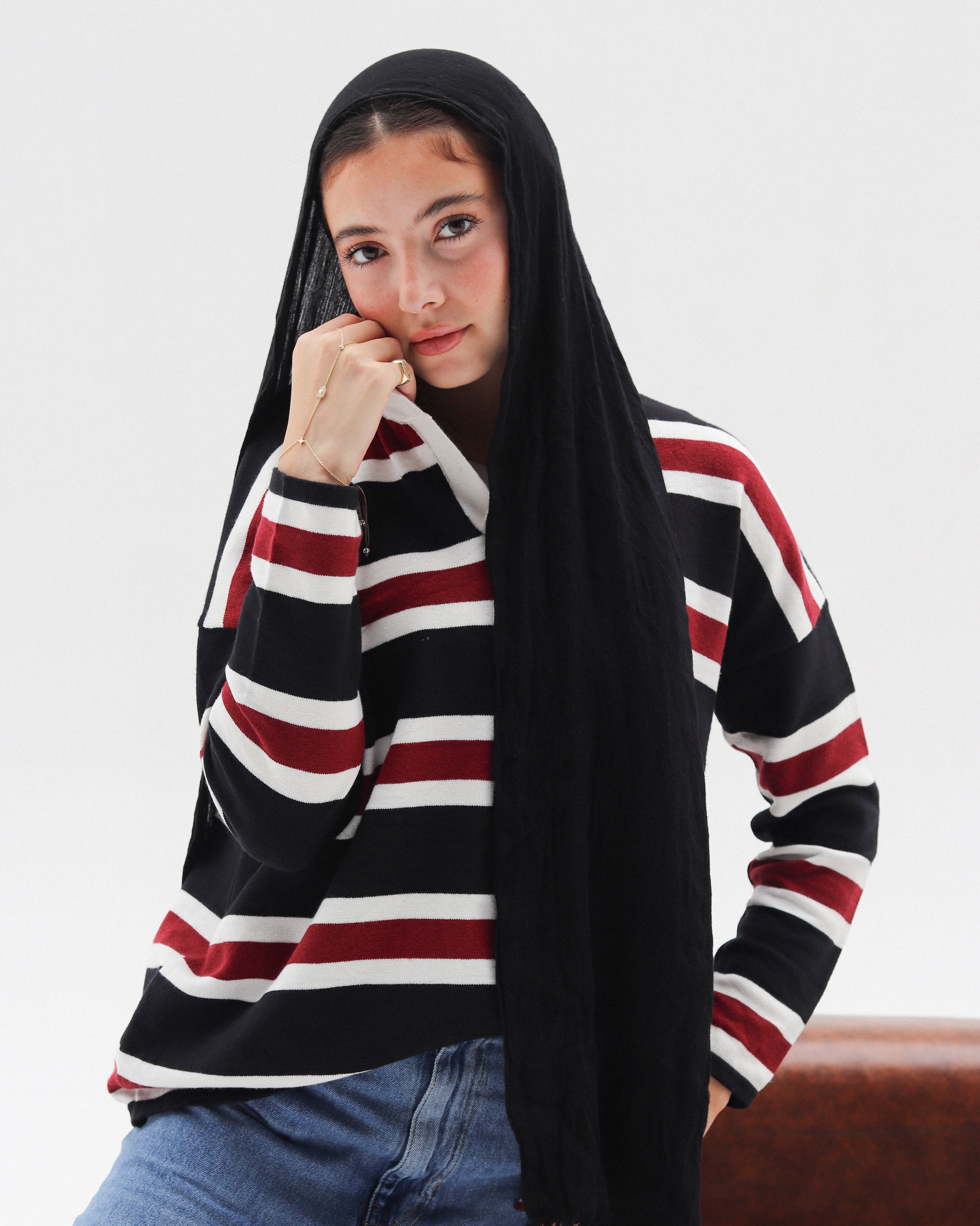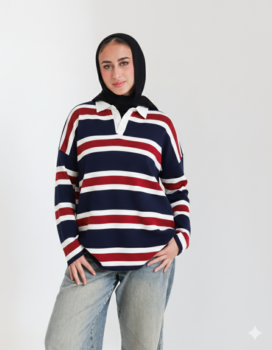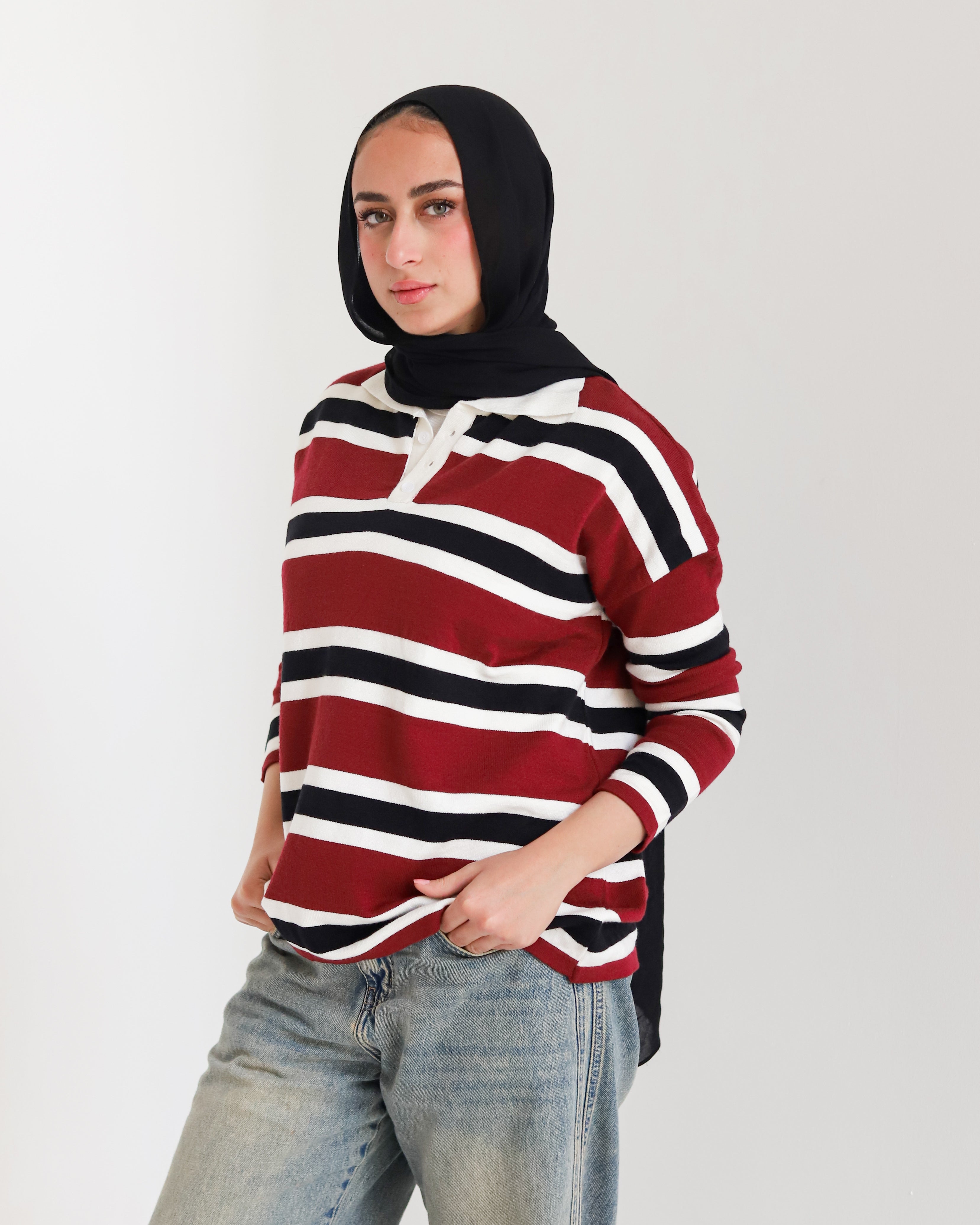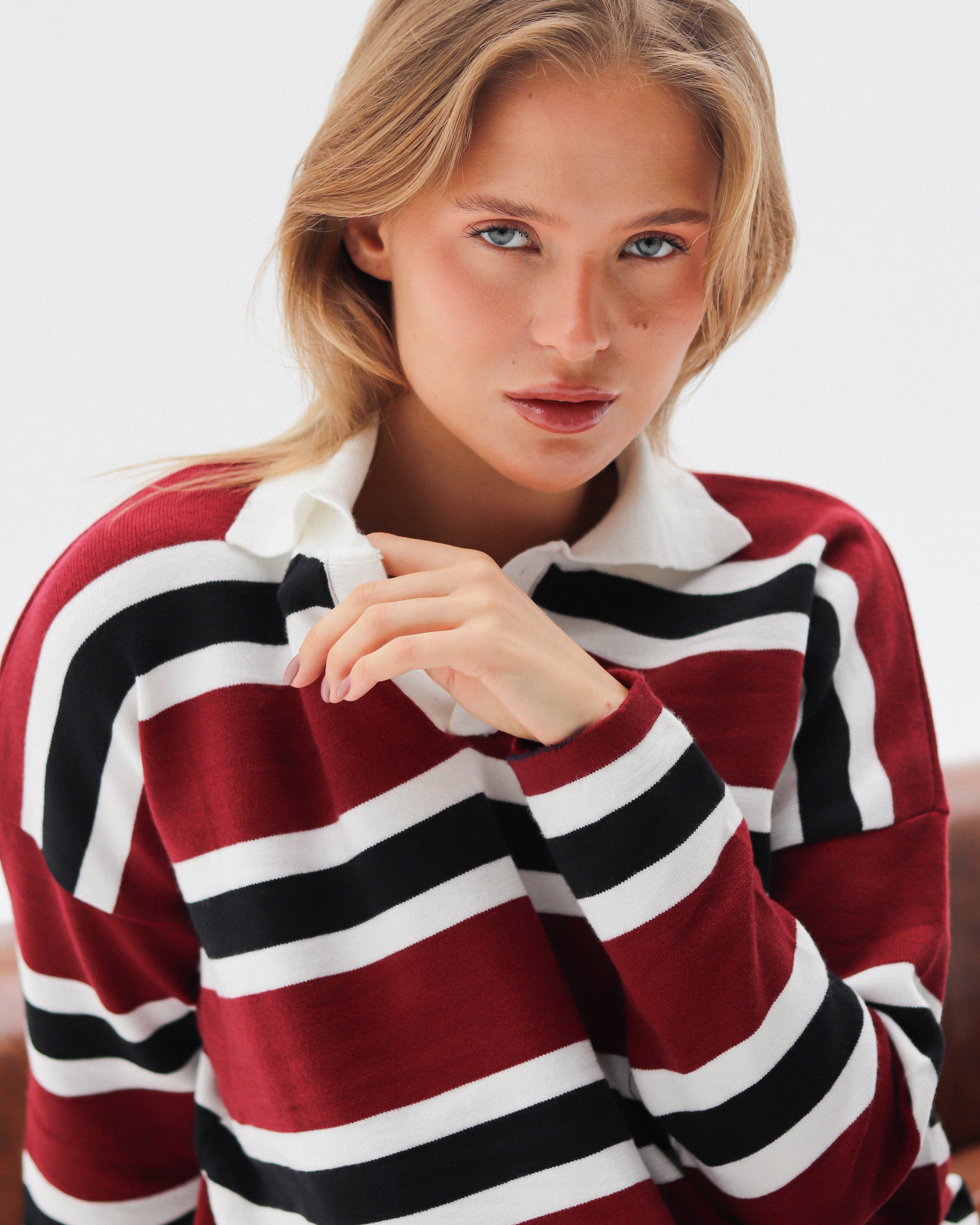 Smart yet relaxed this collared striped sweater adds a fresh, youthful touch to your everyday wardrobe.