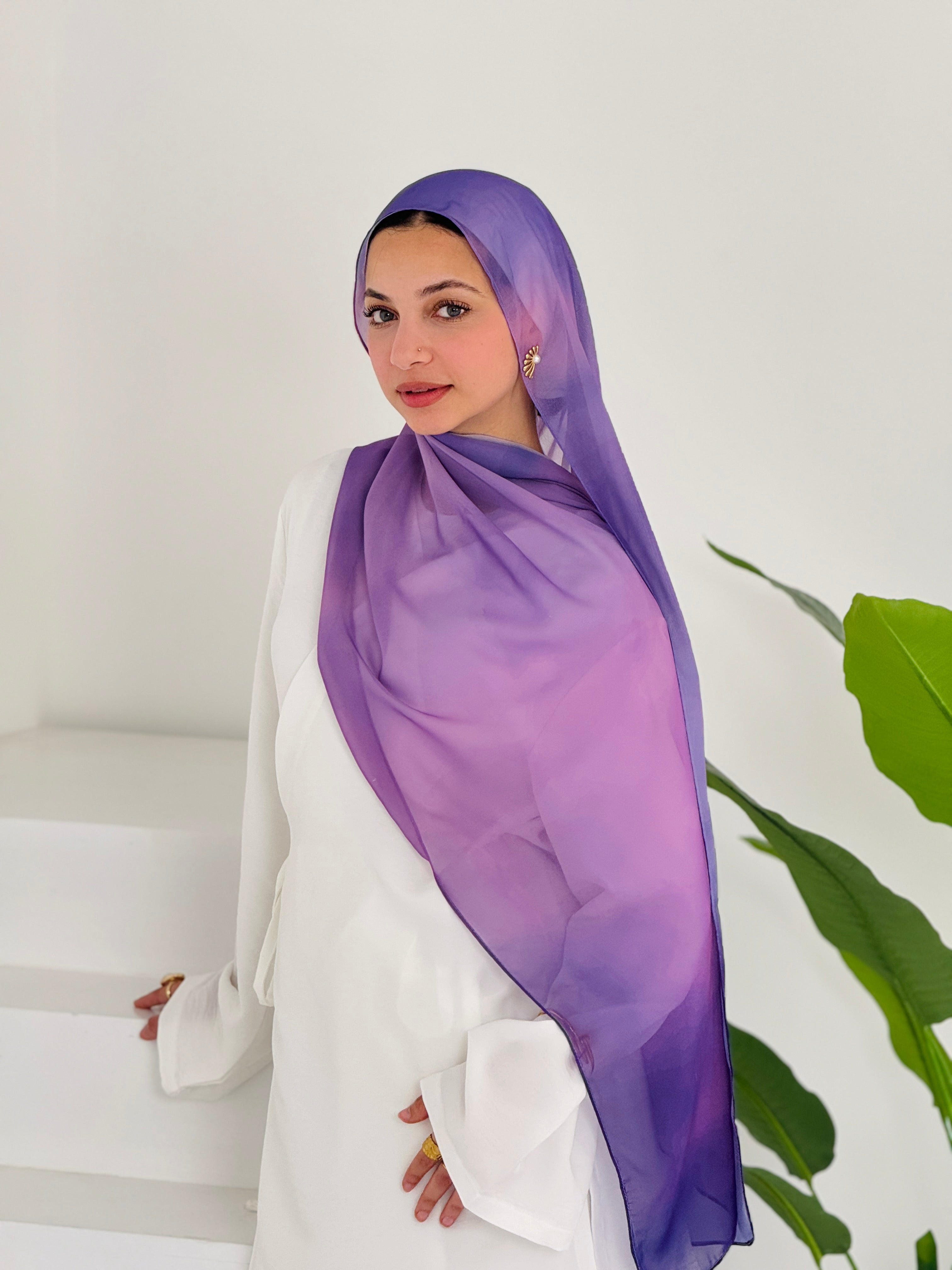 This Lilac Blossom scarf features a meticulously crafted design showcasing delicate lilac florals against a premium fabric background. The expert construction ensures optimal drape and texture, while the sophisticated color palette transitions from soft lavender to deeper purple hues. Versatile dimensions allow for multiple styling options, with carefully finished edges providing exceptional durability and refined aesthetic appeal.