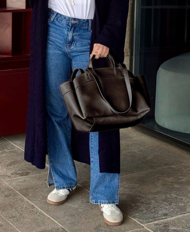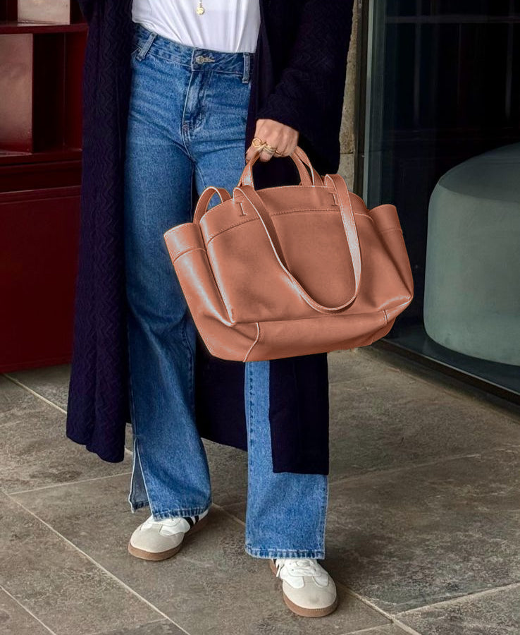 The structured Essential bag combines timeless design with practical functionality. Crafted with precision tailoring, this versatile piece features clean lines and a refined silhouette that transitions seamlessly from day to evening. The structured construction maintains its shape while offering ample interior space for daily essentials. Quality materials ensure durability and longevity, making it a reliable investment for your wardrobe. Perfect for those who appreciate understated elegance and dependable craftsmanship.